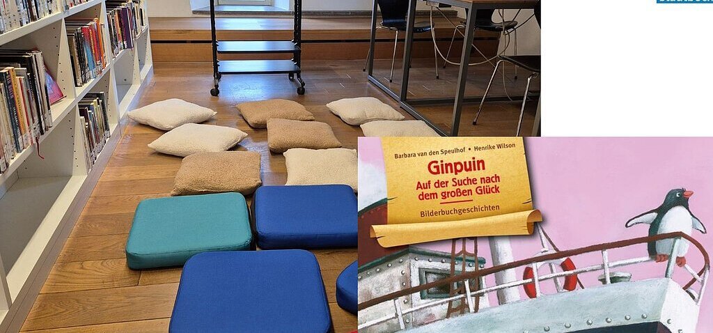 Einmal im Monat lesen wir in der Stadtbücherei Schweinfurt im Ebracher Hof Kindern ab 4 Jahren eine Geschichte aus einem Bilderbuch vor. Das Besondere daran: Die Bilder zur Geschichte werden im Großformat in einem Kasten präsentiert und können von den Kindern die ganze Zeit über betrachtet werden, während vorgelesen wird.
