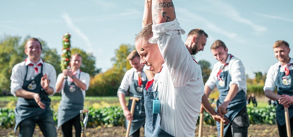 Der Samstag ist bestimmt vom Bau der Festwägen für den Umzug. Es wird Gemüse kistenweise geerntet und zu kunstvollen Gebilden auf den Anhängern dekoriert. Blumen in Hülle und Fülle werden z. B. auf dem Krönungswagen für die neue Gärtnerkönigin angebracht.