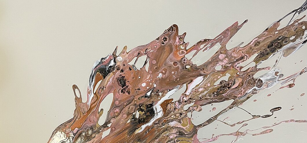 Simone Rössler bringt Farbe mit vielfältigen Techniken auf die Leinwand – mal geschüttet, mal gespachtelt –, sodass Farben und Bewegungen buchstäblich durch die Flächen und Bildräume fließen.