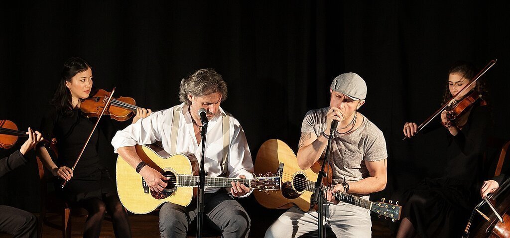 Das Zusammenspiel der beiden Stimmen und zweier Gitarren mit den klassischen Instrumenten lässt die Songs von Simon & Garfunkel zu einem ausdrucksstarken und außergewöhnlichen Musikerlebnis werden. Die Konzertbesucher erwartet ein Abend voller Emotion, eine Hommage an die 60er und 70er Jahre und eine musikalische Vielfalt wie nur selten. Als Duo mit Streichquartett durchstreifen sie die gefühlvollen Lieder und „rocken“ an anderer Stelle ihr Publikum.